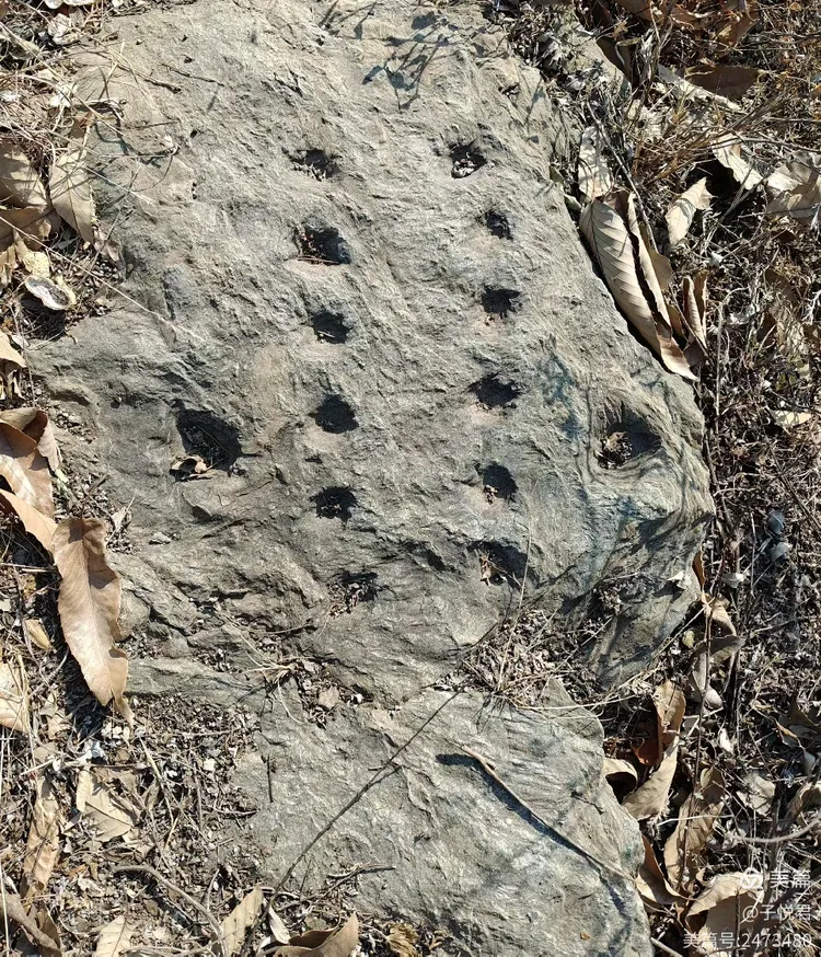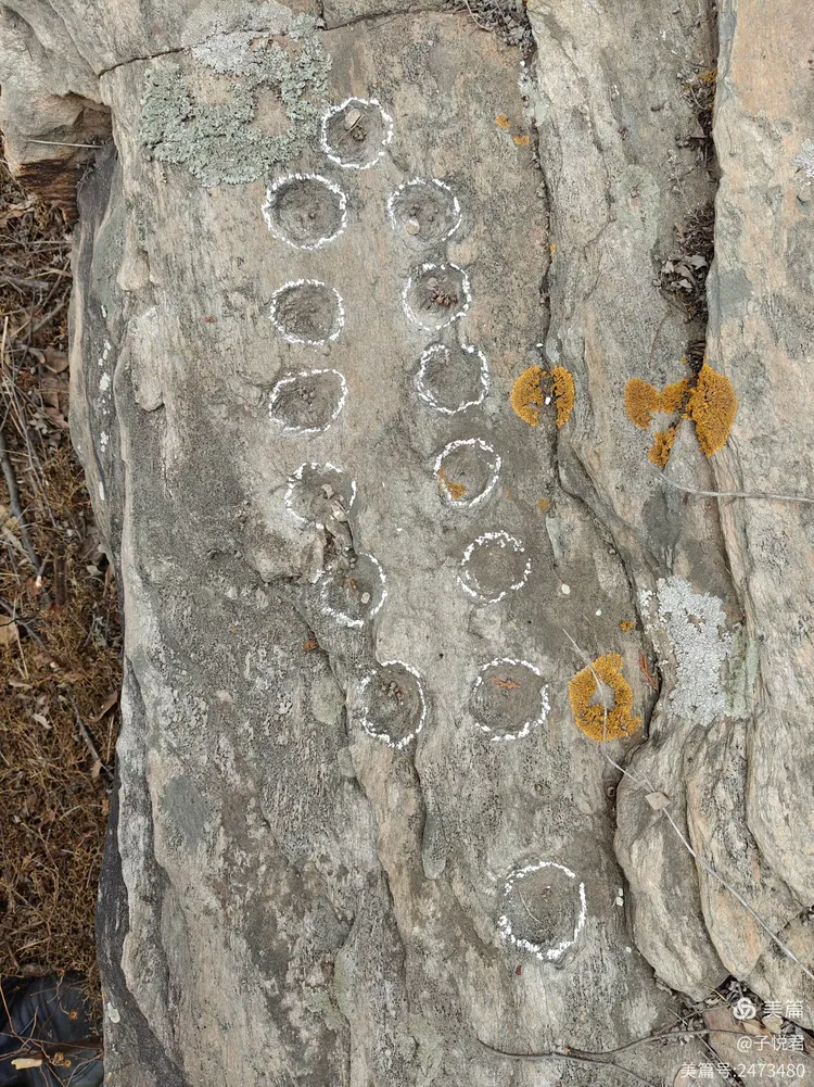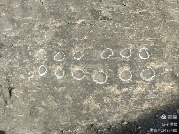 从形制来看,12 窑岩文由 12 个规整的圆形凹窑组成,呈两列均匀排布,单个凹窑直径约四五公分,深度一两公分,刻制手法古朴、形制固定,是中原岩文中辨识度极高的标准化图式,也印证了地名与岩文的直接关联 —— 地名是活着的文化记忆,更是对 12 窑岩文最直白、最长久的记载。